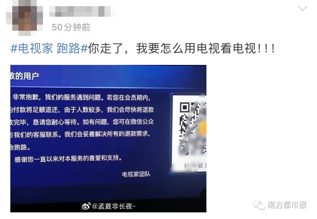 在最新公告中,电视家团队称:“非常抱歉,我们的服务遇到问题。若您在会员期内,您的付款将足额退还,由于人数较多,我们会尽快将退款发放完毕,恳请您耐心等待。如有问题,您可在微信公众号与我们的客服联系。我们会妥善解决所有的退款需求不会跑路,不会跑路。”
