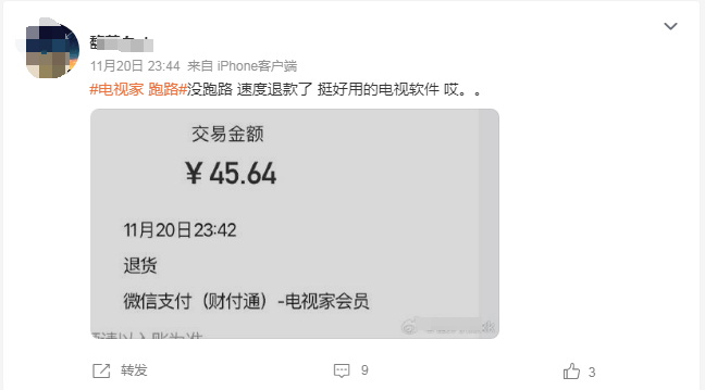 目前,已有网友称收到了电视家的退款。