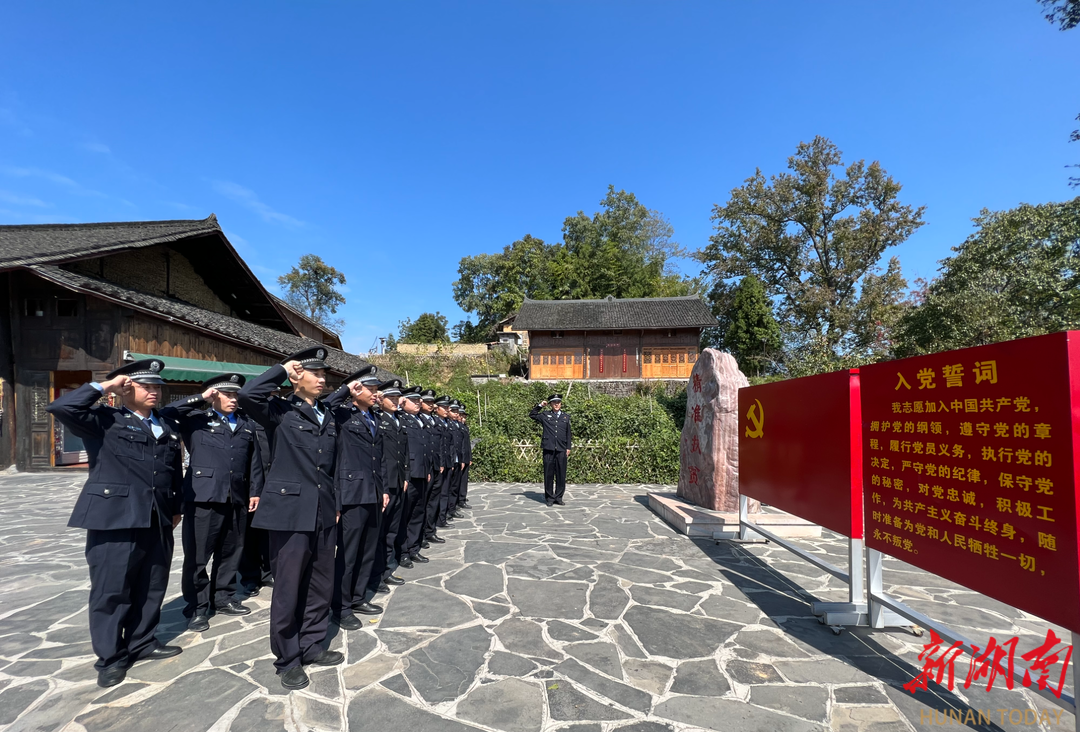 “党建红”与“公安蓝”在十八洞派出所深度融合。2021年,十八洞村被中宣部命名为全国爱国主义教育示范基地,十八洞派出所借势而为,定期组织全体民辅警到示范基地开展政治轮训,邀请村支部老党员参加该所党支部民主生活会,给全体党员民警讲述十八洞村的变迁史,从自强不息的“十八洞精神”中汲取奋进力量,厚植为民情怀。