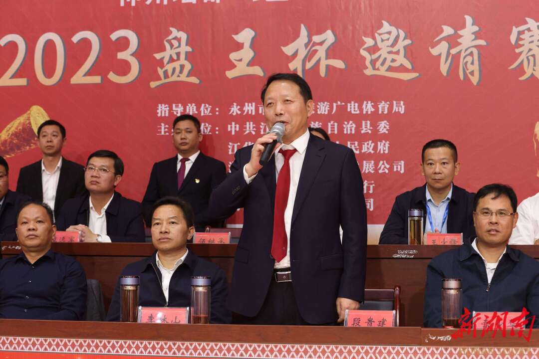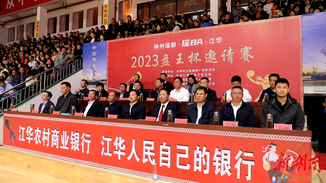 湖南日报·新湖南客户端11月22日讯(通讯员 王辉 钟芳玲 蓝玉春 张建)11月21日晚,神州瑶都•瑶BA•江华2023盘王杯邀请赛隆重开幕。来自湘粤桂三省(区)的参赛队伍和嘉宾们齐聚一堂,共同见证这一篮球盛事的开启。湖南省林业局党组成员、副局长李林山,湖南江华瑶族自治县委书记段贵建,广西八步区委书记雷少华,广西平桂区委书记朱建军,广西富川瑶族自治县委书记尹哲,永州市文化旅游广电体育局副局长赵荣学,以及来自广东、广西、湖南等县(市)区的领导,县直相关部门负责人参加开幕式。开幕式由江华人大常委会主任伍继承主持,江华政协主席义洁出席,江华瑶族自治县委常委、常务副县长何开银致欢迎词,江华瑶族自治县领导万汝青、刘晓萍参加。
