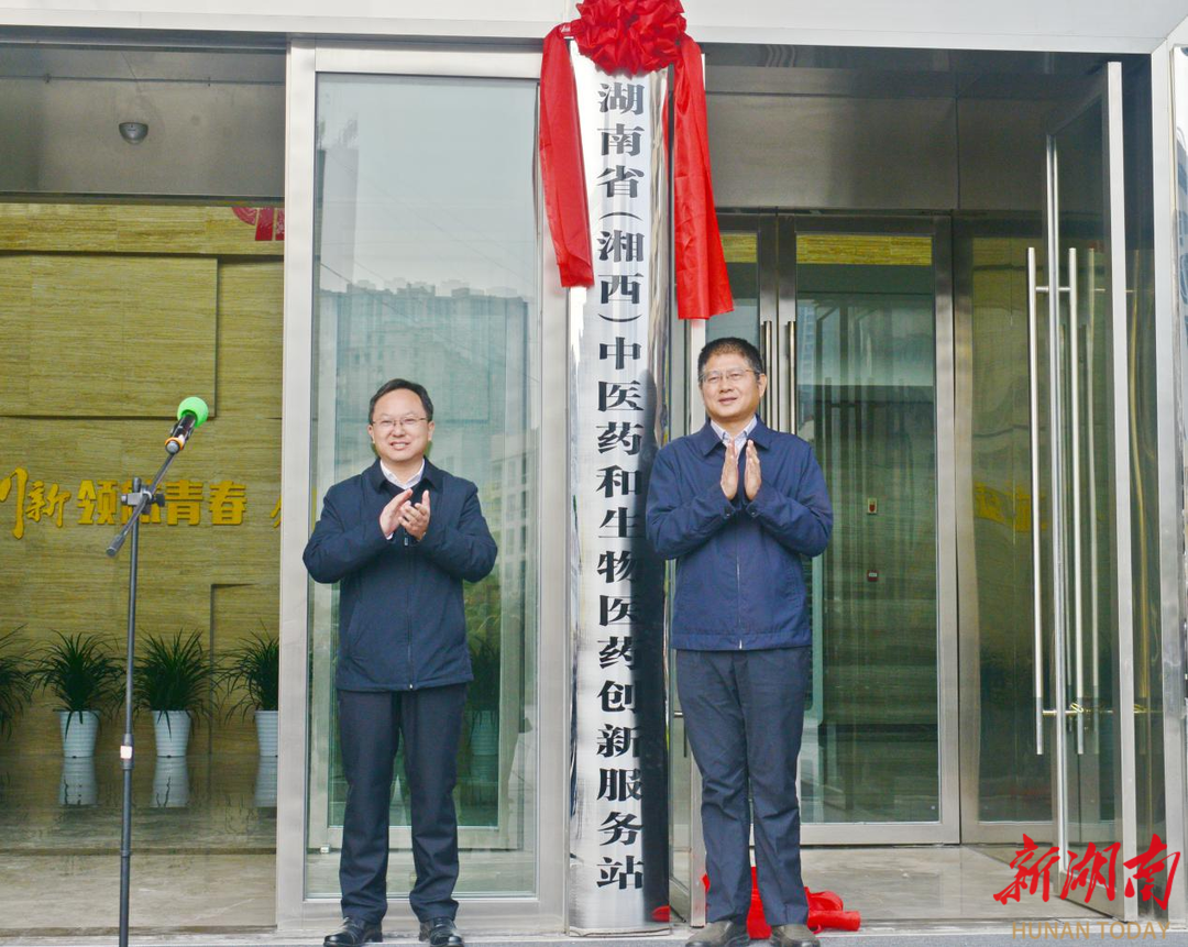 湖南日报·新湖南客户端11月23日讯(记者 李孟河 通讯员 向朝森 张海艳 李俊)11月23日上午,湖南省(湘西)中医药和生物医药创新服务站揭牌仪式,在湘西高新区举行。湖南省药品监督管理局党组成员、副局长覃永忠,与湘西州中医药和生物医药产业链副链长、州政府副州长彭延敏共同揭牌。