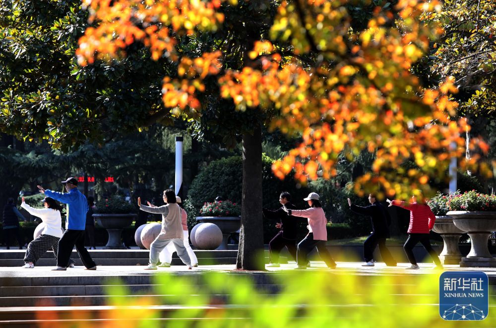 11月24日,市民在江苏苏州公园锻炼。新华社发(杭兴微 摄)