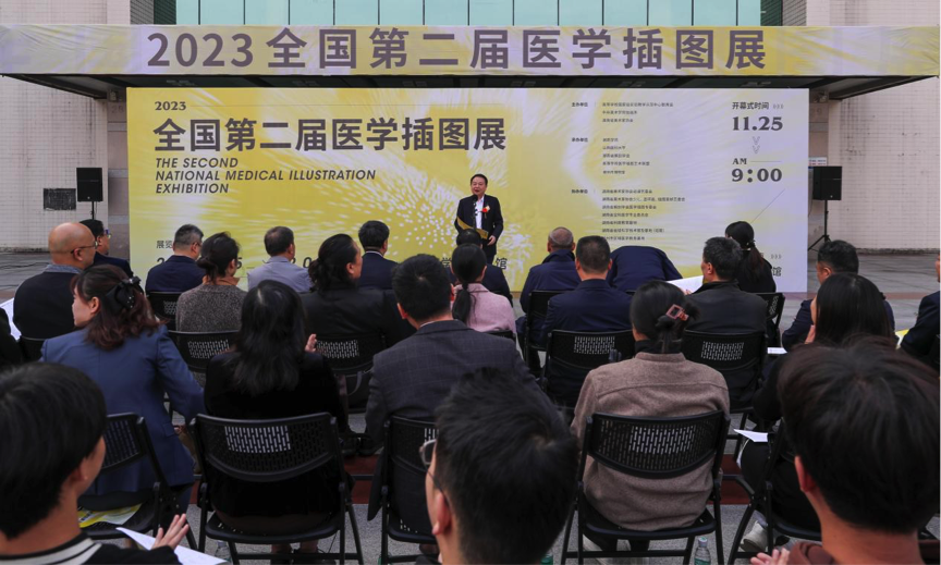 湖南日报·新湖南客户端11月28日讯(李珍 喻娜)11月25日上午,全国第二届医学插图展在湘南学院开幕,来自全国艺术界、医学界的知名专家学者齐聚一堂,共同见证艺术与医学的碰撞与融合。湘南学院党委副书记刘卫平,党委委员、副校长王雪峰出席活动,湘南学院临床学院(附属医院)党委书记谭东辉主持开幕式。