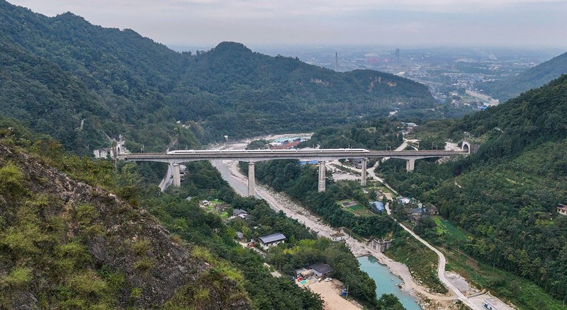 川青铁路青白江东至镇江关段处于成都平原向青藏高原东部边缘过渡的高山峡谷地带,海拔从安州站的634米攀升至镇江关站的2503米,高差近2000米,穿越了龙门山、岷山、西秦岭等众多山脉,跨越涪江、岷江、嘉陵江三大水系,沿线地质条件复杂,施工难度大。该项目2011年3月开工建设以来,国铁集团组织各参建单位和广大建设者发扬“逢山开路、遇水搭桥”的奋斗精神,攻坚克难,拼搏奉献,优质高效推进工程建设,历时12年架设了镇江关五线特大桥等33座桥梁,建成了跃龙门隧道等10座隧道,确保了工程如期建成。