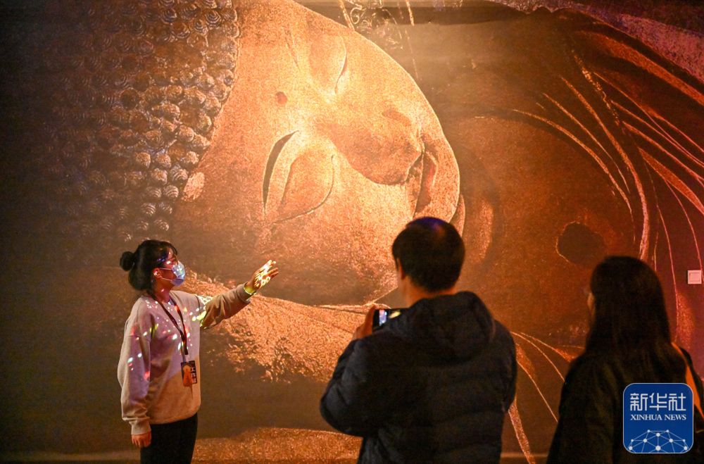 ↑11月28日,观众在天津数字艺术博物馆内参观“发现敦煌——敦煌艺术情景式特展”。
