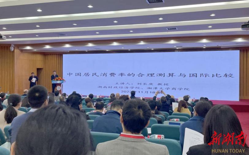 刘长庚在会上作“中国居民消费率的合理测算与国际比较”主题报告