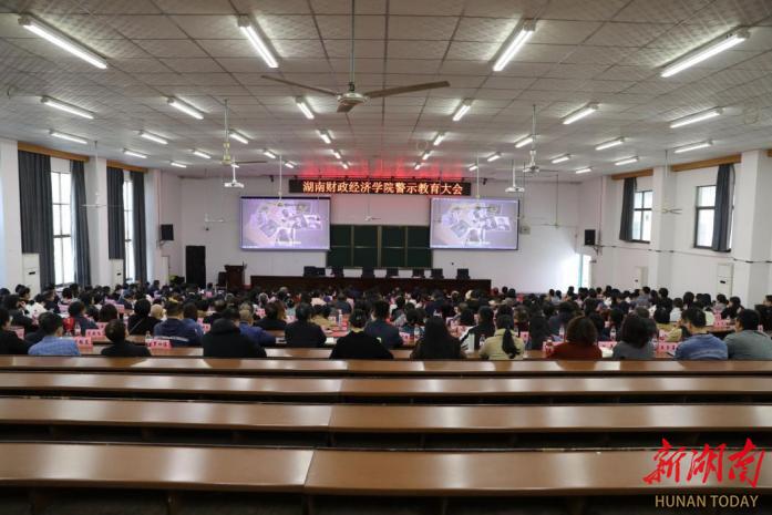 11月27日,湖南财政经济学院在二教学楼2J01教室召开警示教育大会。校党委副书记苏玲讲话,纪委书记李雪山主持会议,党委委员、宣传统战部部长文炳勋,二级学院副科以上干部及其他部门所有人员参会。