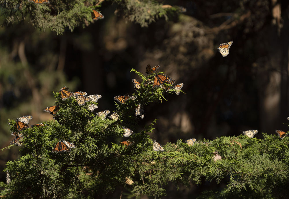 ↑这是11月28日在美国加利福尼亚州圣克鲁兹县一处树林中拍摄的西部帝王蝶。新华社发(李建国摄)