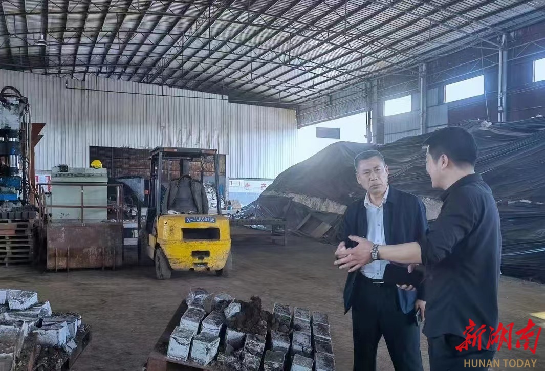 图为永兴法院党组书记、院长刘小武(左)走访企业。