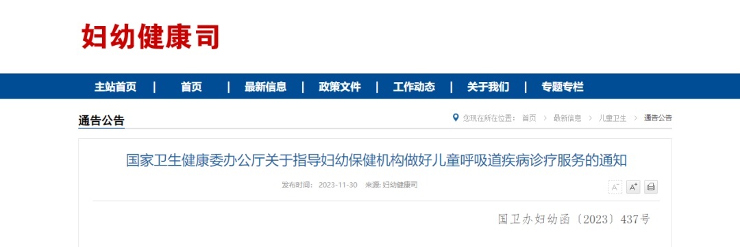 《国家卫生健康委办公厅关于指导妇幼保健机构做好儿童呼吸道疾病诊疗服务的通知》文件解读