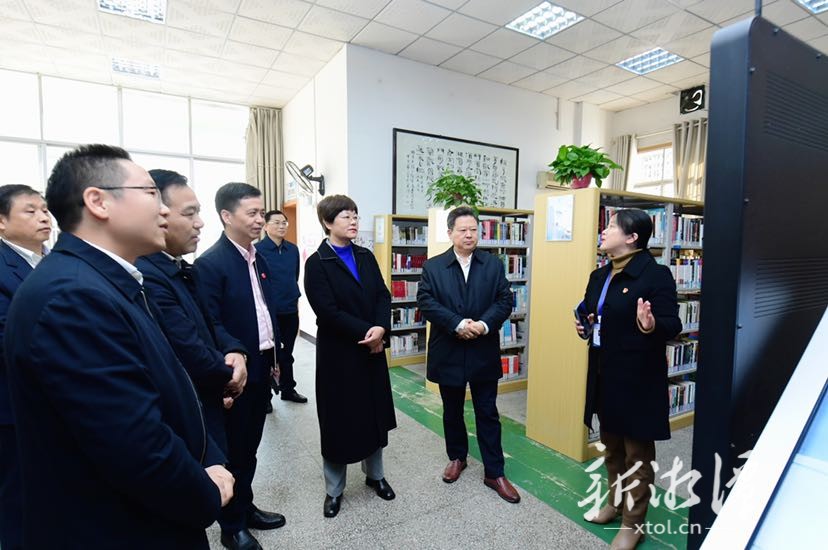 刘志仁一行首先来到湘潭市图书馆,现场调研公共文化服务和古籍保护工作。市图书馆是湖南省解放后创建的第一个地市级公共图书馆,2023年被文化和旅游部评为“二级图书馆”。刘志仁认真听取图书馆数字化建设、古籍保护、消防安全等工作汇报,要求加快盘活闲置资源,推进阵地提质改造,弘扬优秀湖湘文化,做好藏书管理和保护工作,营造良好的阅读环境。