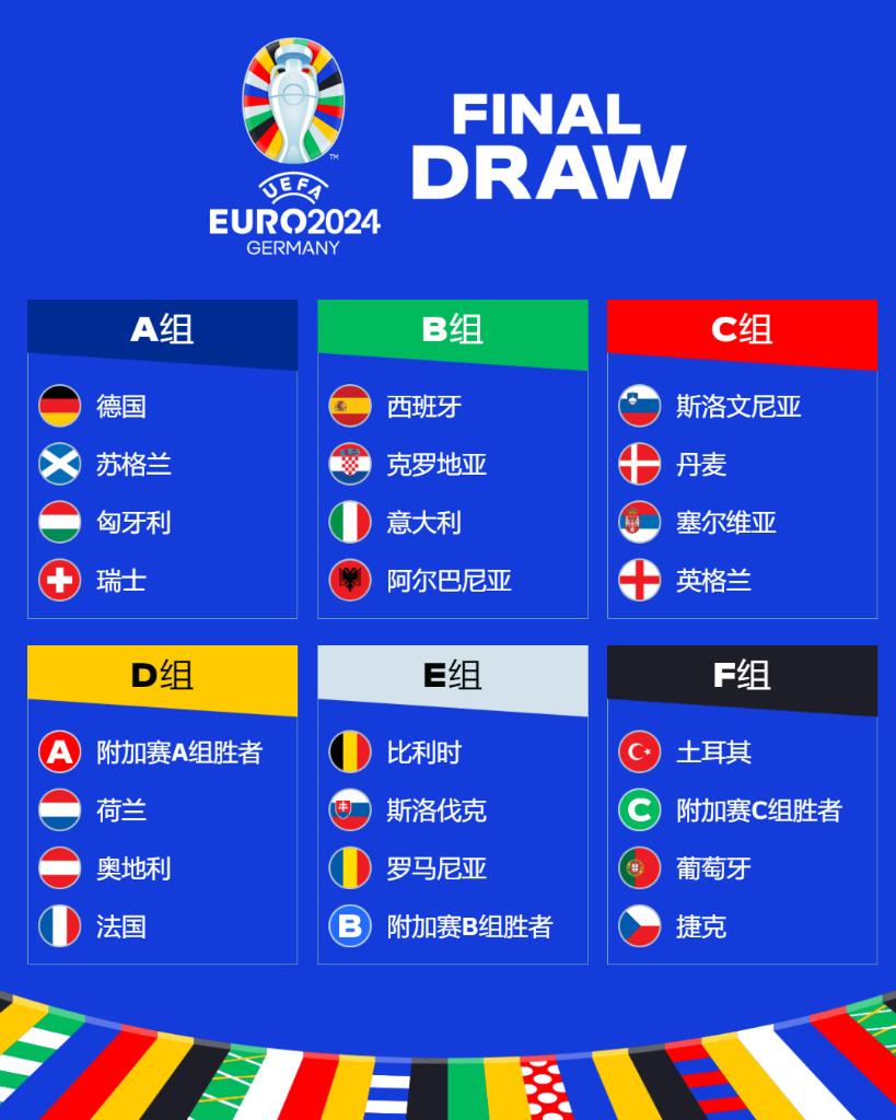2024足球欧锦赛分组抽签:西班牙、克罗地亚和意大利队同分“死亡之组”