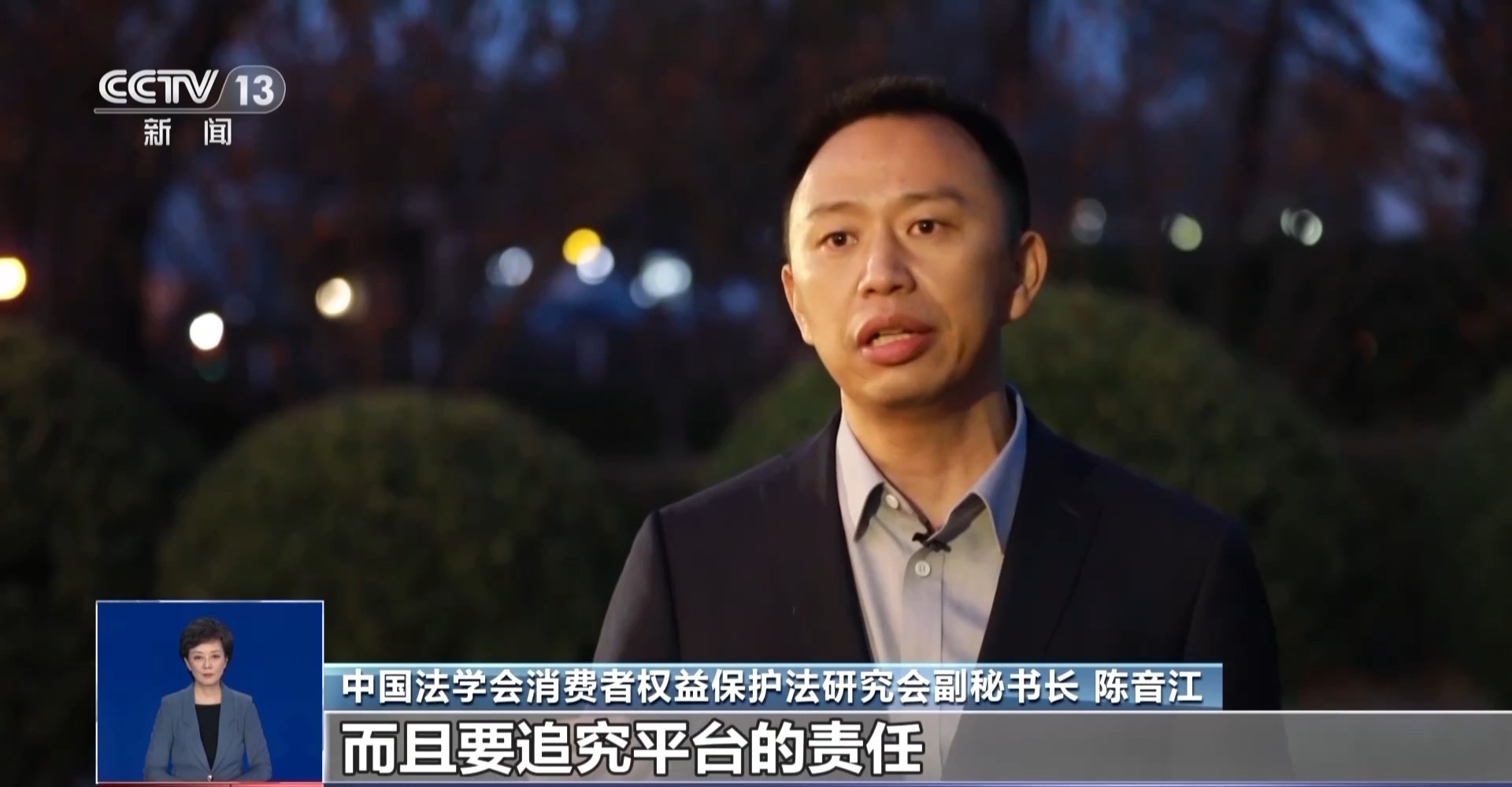 中国法学会消费者权益保护法研究会副秘书长 陈音江:一定要加大对平台内信息发布内容的审核和管理力度,有关部门也要对类似的这种行为,加大严厉查处和打击的力度,不仅仅要对这一种相关信息发布人进行相应的处理,而且要追究平台的责任。