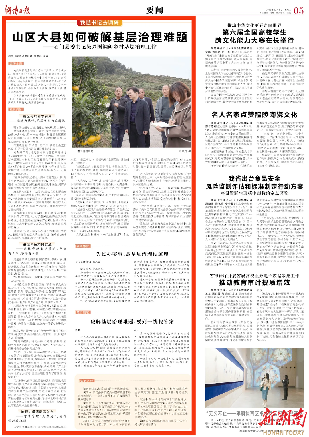 山区大县如何破解新时代乡村基层治理难题?11月14日至15日,记者跟随石门县委书记吴兴国深入乡镇街道,展开调查研究。