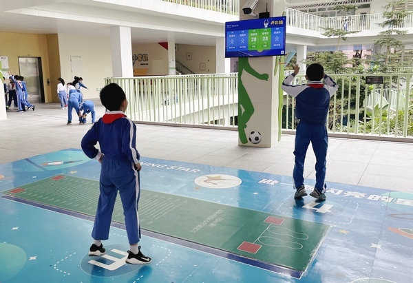 学生们利用AI智慧体育设备进行课间10分钟运动。图片来源:福田区教育局