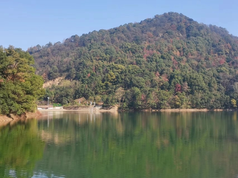 在“林涧寻踪”景观区,踏上新更换的仿木栈道,自然的气息扑面而来,沿途还能不时发现冬季开放的红色山茶花。冬季,洪寺庵水库虽然水位不高,但是湖水清澈,在阳光的照射下波光粼粼,倒映出草木仍青的山体,构画出一幅“镜水云天”的好景观。