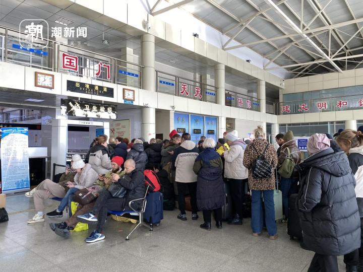黑河口岸出境大厅,等待返程的俄罗斯游客。潮新闻记者 陈黎明 摄