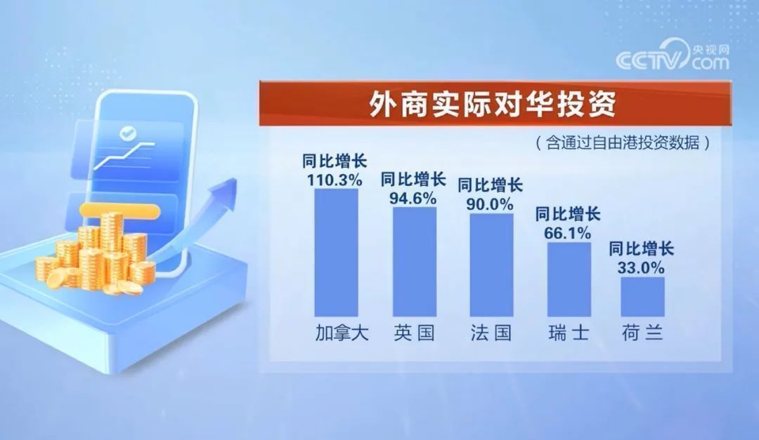 2023年1—10月,全国新设立外商投资企业41947家,加拿大、英国、法国、瑞士、荷兰实际对华投资同比分别增长110.3%、94.6%、90%、66.1%、33%。