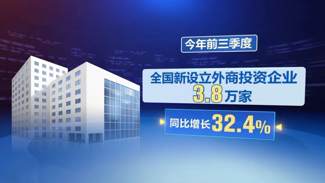 2023年前三季度,全国新设立外商投资企业3.8万家,同比增长32.4%。