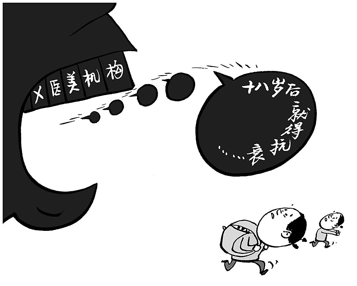 亮眼的统计数据、日益增多的各类美容机构、庞大的消费群体等,无不预示着医美是一个前景十分光明的行业。但巨大的医美需求与频现的医美乱象之间形成鲜明反差,让人想美容却不敢、已接受服务又感到后悔。让消费者能够安心地变美,已成社会的一大期盼。整治医美乱象,则应从整治贩卖焦虑开始,对于“18岁就得抗衰”式鼓吹,更应该一发现就严管,进而斩断误导宣传向行动发展的链条。