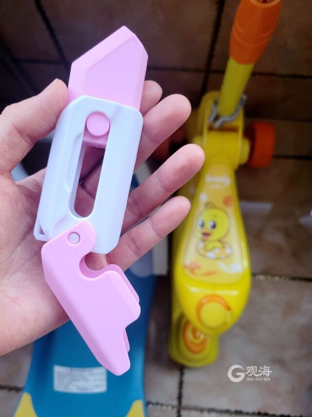 “警惕!你家孩子也在玩网红玩具‘萝卜刀’吗?”据市教育局微信公众号介绍,一甩“刀片”出来,再一甩就回去了,借助自身重力实现刀体滑动,这种3D打印彩色塑料制成的玩具刀就是最近突然爆红网络的萝卜刀,很多中小学生都会购买玩耍,有的成人也玩,还称其为解压玩具。号称“解压神器”的萝卜刀,在某购物平台月销超过10万单。基本玩法是将小刀垂下后收回;第二种玩法是通过手指打开一个小缝,然后快速甩出刀;第三种玩法是将刀倒过来,打开一条小缝后迅速捏紧,然后等待刀落回手中;第四种玩法是将出鞘的刀收回手掌中。“刀”无论是哪种材质都是利器,建议学生不要在学校玩萝卜刀,也不要做刺、捅、砍等危险动作。