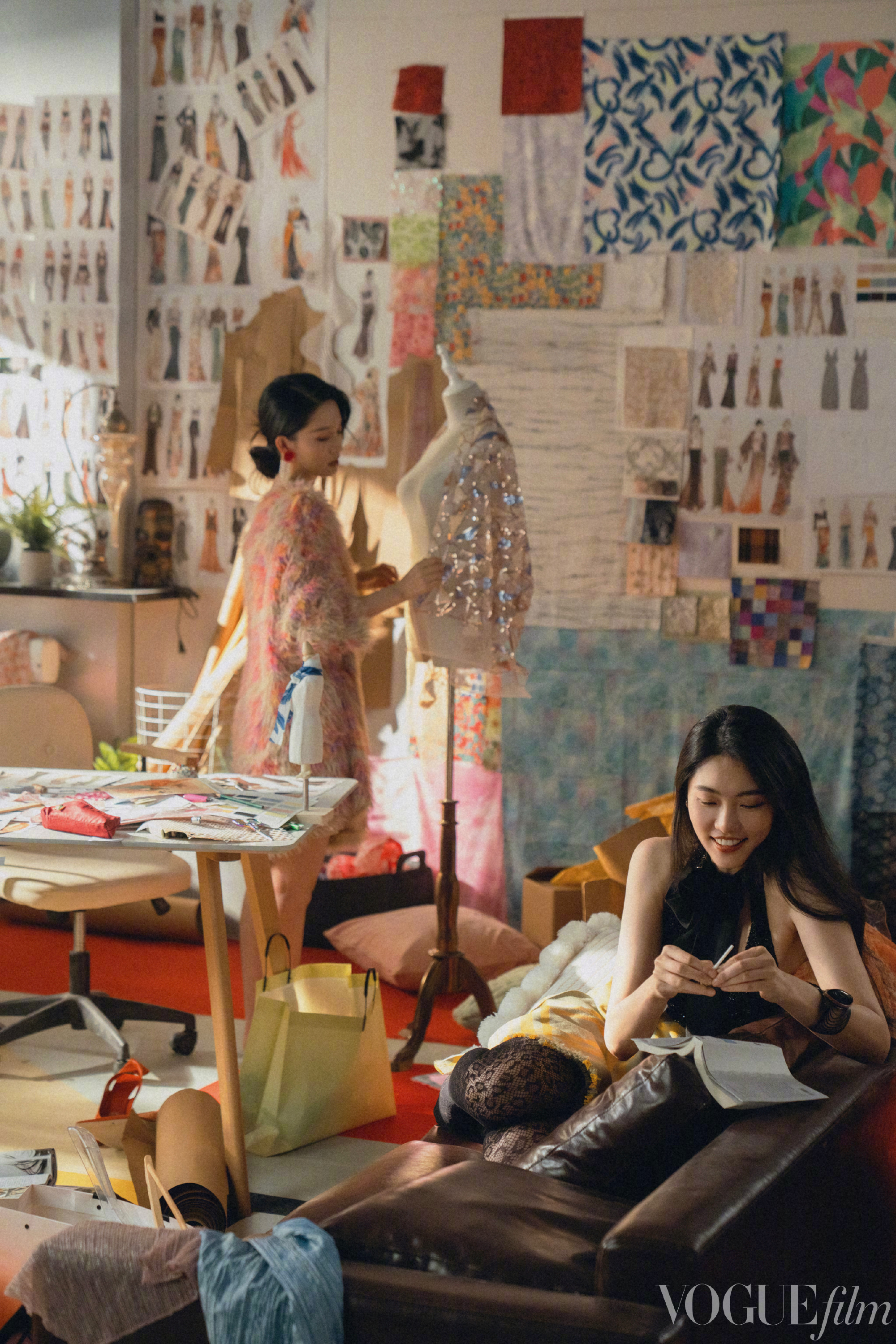 “服装设计对于演员来说是非常有帮助的,能够帮助他们进入角色并诠释角色的状态和情感。”李沁说,在VOGUE Film的短片《夏天的色彩》中扮演夏天这个角色时,服装的设计定调是非常随性、慵懒和自由的,所以当她穿上这件充满色彩、慵懒和松弛感的衣服时,能够非常自然地诠释人物的状态。