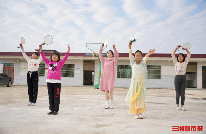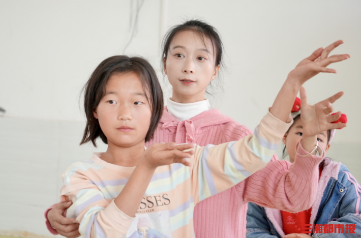 记者了解到,新岭小学地处祁东县偏远山村,距离县城有一小时的车程。这所小学现有学生100余人,70%是留守儿童,还有一些是孤儿。这里有很多内向的孩子,不善与人交流。为了打开孩子们的心扉,近两年,学校根据现有老师们的特长,陆续开设了舞蹈、美术、书法等兴趣班。有舞蹈基础的邓娇,自荐成了舞蹈兴趣班的老师,带领学生们学习中国古典舞。