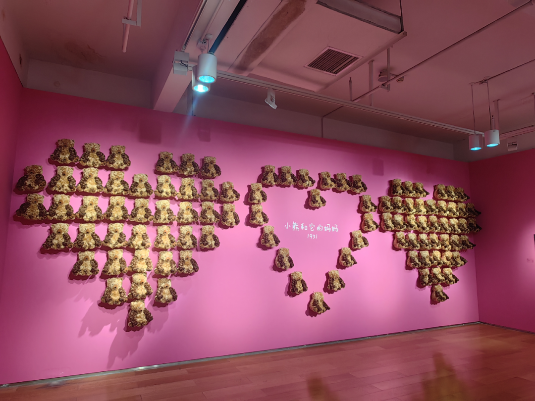 如果说戴泽的艺术创作题材以现实生活为主,那么他对于自己身边的师友、同事及学生们的形象描绘可谓是真诚满满,对其家人的描写则更显真情,正如戴泽自己所言:“一个艺术家,只有融入真感情才能画出感人的作品。”在展馆中的一面粉红色墙面上,由近百只小熊玩偶组合而成的三颗爱心映入眼帘。细观之,其小熊玩偶的原形系戴泽于1951年为表达对妻子与孩子的思念,依据其夫人所寄照片创作而成的纸本水彩《小熊同他的妈妈》。戴泽以身边亲友师生为绘画源泉,以率性的心灵之于创作,使一切形象朴实化,一切观念理想化,从而产生现实世界不可比拟的、“画”之外的审美心境,将自身的真情活现于作品之中。与其同样通过艺术表达对世界的爱的朋友们,如谷嶙的肖像油画《戴泽先生》、靳尚谊的肖像素描《杨淑卿头像》、龙力游的人物油画《爱子情深》等作品便是对其情感进行艺术表达的最佳诠释。其戴泽与朋友们的真情流露所呈现出的朴素画作,印证了《庄子·天道》之所言:“朴素而天下莫能与之争美”的艺术情感表达,使绘画呈现出朴素而又极具时代特色的艺术表现形式。