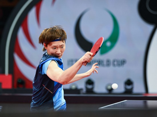 12月6日,中国队选手王曼昱在女单比赛中回球。新华社记者 王曦 摄