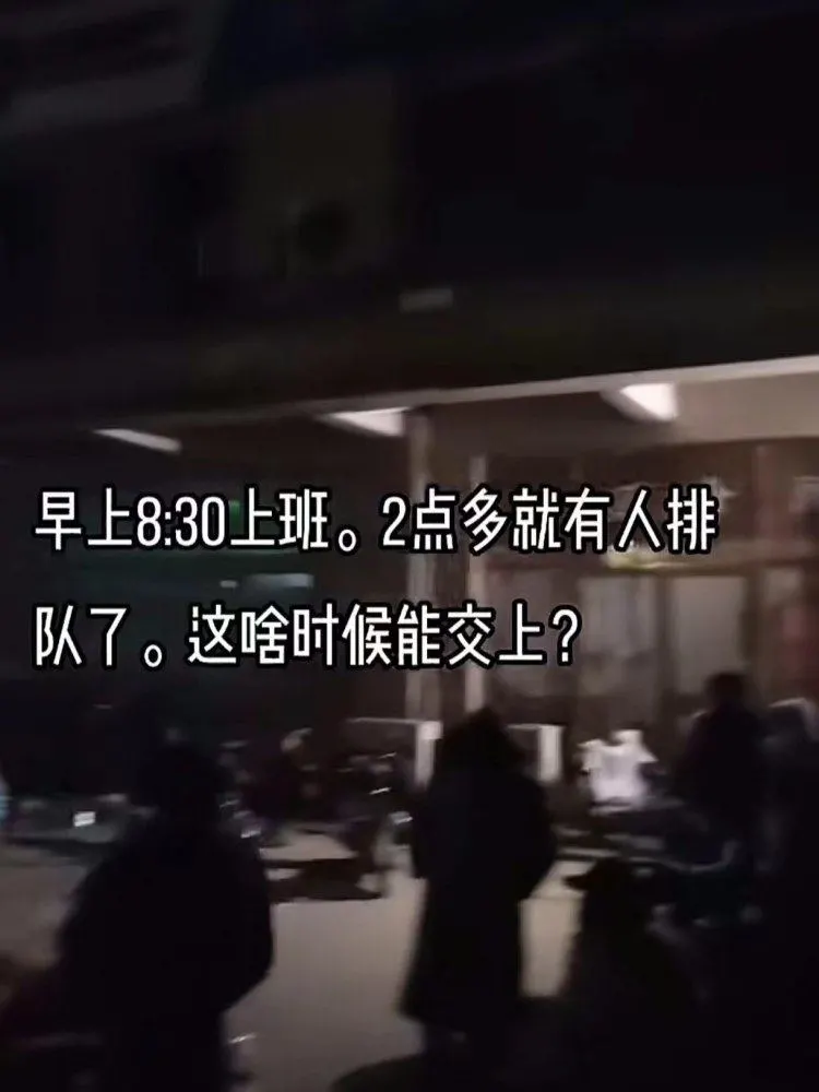 记者注意到,有网友12月8日凌晨4点多发布视频称,“早上8:30上班,2点多就有人排队。这啥时候能交上?”