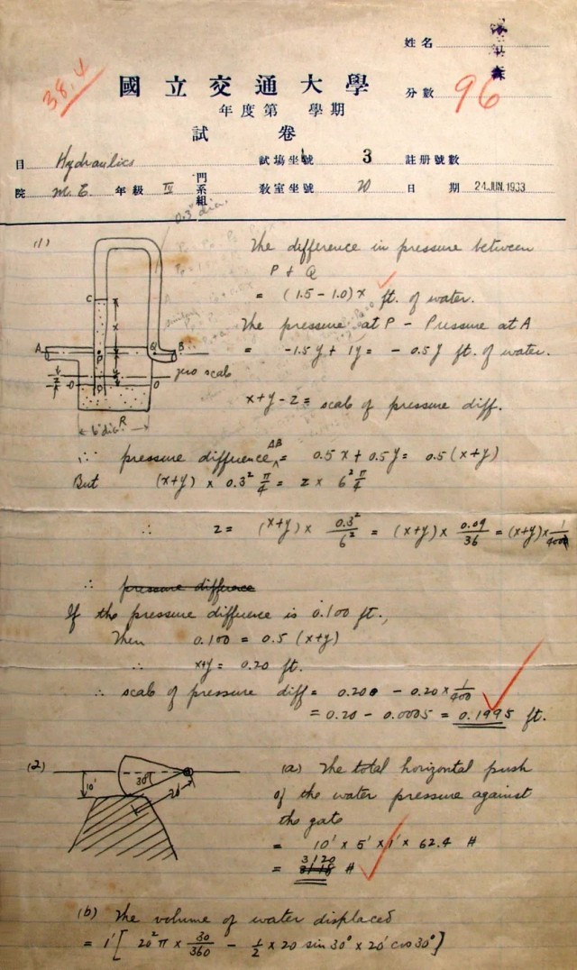 这次考试由金悫老师出题并主持,阅卷时,他发现6道题钱学森全部解答正确。只是最后一题公式推导中“Ns”漏写了一个“s”,被扣去4分。另有版本称,这4分是钱学森主动要求扣去的。