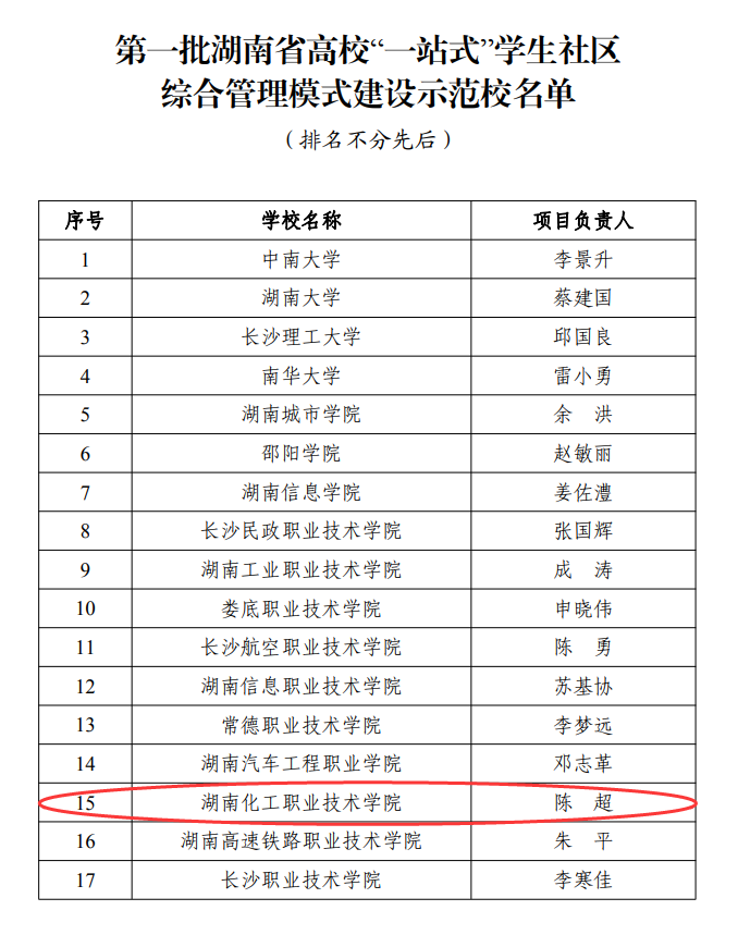 近日,中共湖南省委教育工委、湖南省教育厅公布了第一批湖南省高校“一站式”学生社区综合管理模式建设示范校名单,湖南化工职业技术学院成功入围首批示范院校。