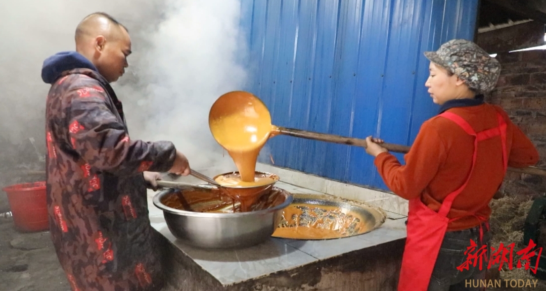 湖南日报·新湖南客户端12月12日讯(通讯员 蔡兴 胡俊凯 刘瑛)时下,正是甘蔗收获的季节,在宁远县鲤溪镇下庄村,村民们纷纷开启了收获糖蔗、熬制红糖的“甜蜜事业”。