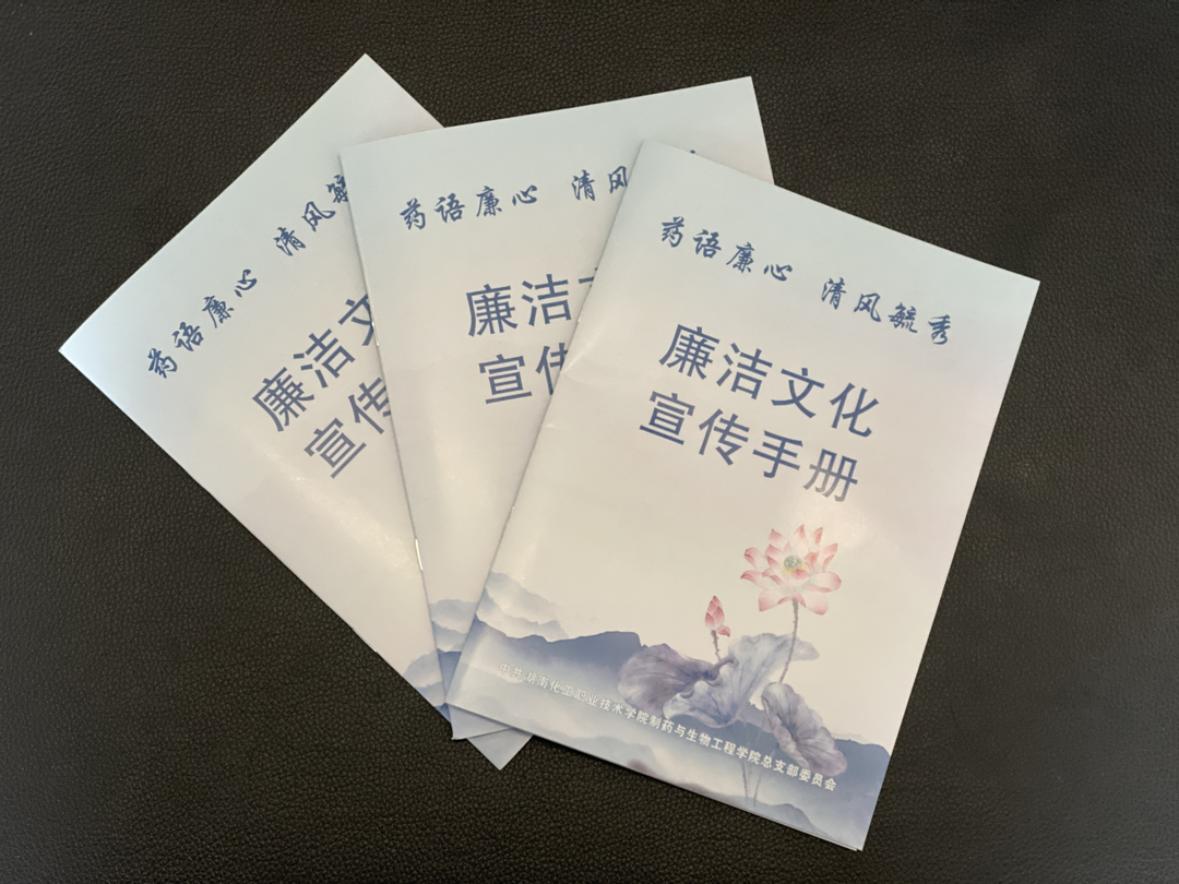 为推动廉洁文化融入日常、廉洁教育入脑入心,湖南化工职业技术学院制药与生物工程学院党总支组织编写《廉洁文化宣传手册》(以下简称《手册》)复印并分发。