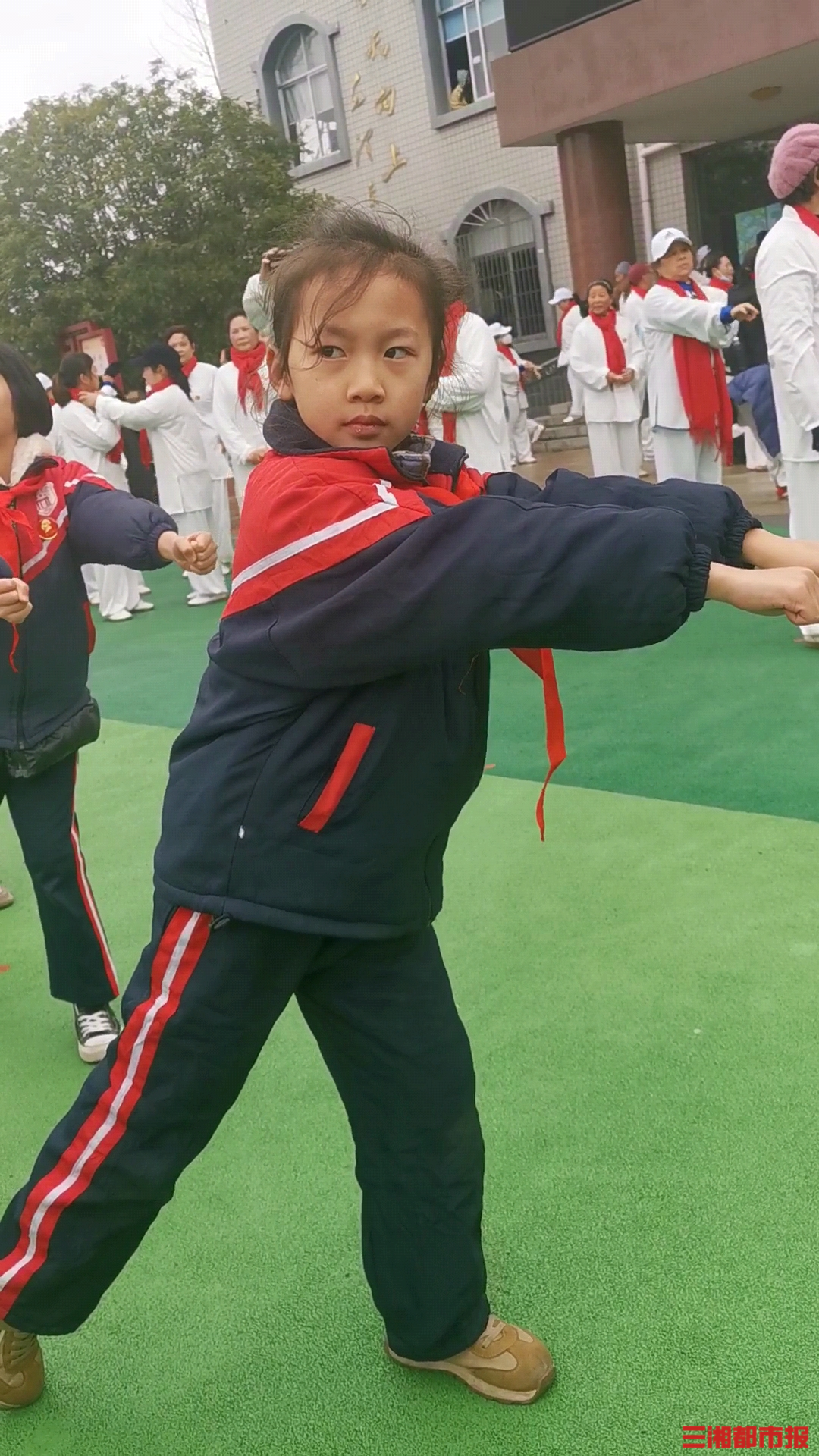 不畏初冬降温寒冷,来自长沙、益阳、娄底、邵阳、湘潭等地的数百名太极拳爱好者和学生们,集体同练新编系列十三式太极拳。12月15日,“弘扬太极 强我少年 共筑中国梦”我和爷爷奶奶、爸爸妈妈同台演练太极拳活动在韶山学校举行。