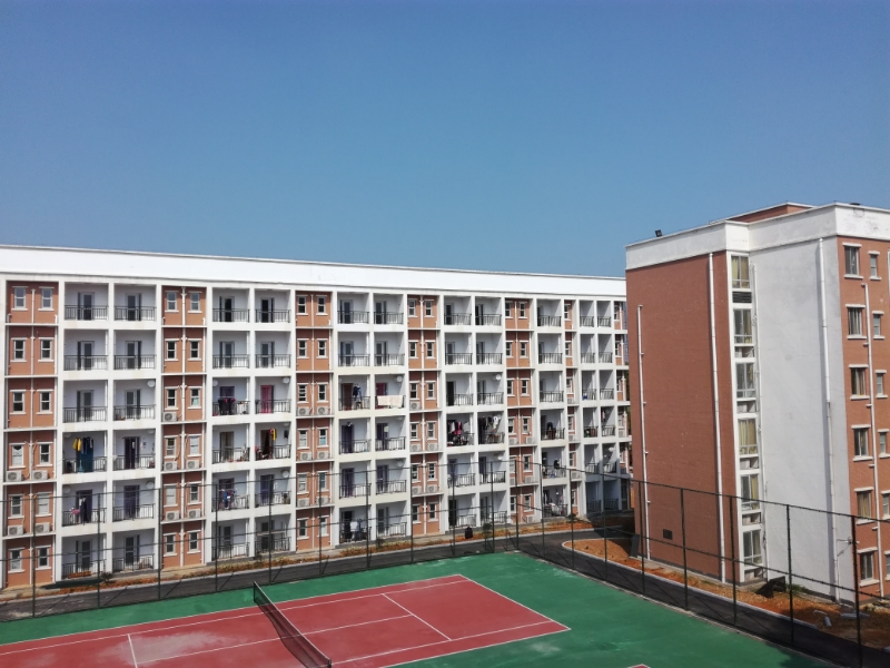 行走在岳阳新华达制药有限公司,院内可见多处适宜休闲的亭子、棚子、阳光房,还有篮球场、乒乓球场、羽毛球场、网球场、游泳池等健身设施。