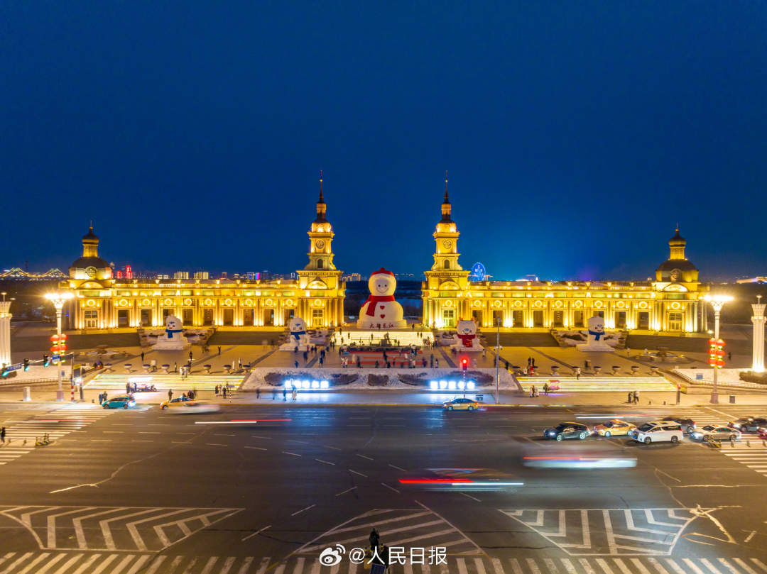 头戴红帽子、系着红围脖、胸前两颗红心……脸上洋溢着大大微笑的哈尔滨大雪人回来了!大雪人高约18米,当夜色升起,灯火辉煌时,夜景模式下的哈尔滨大雪人安静又治愈↓↓↓