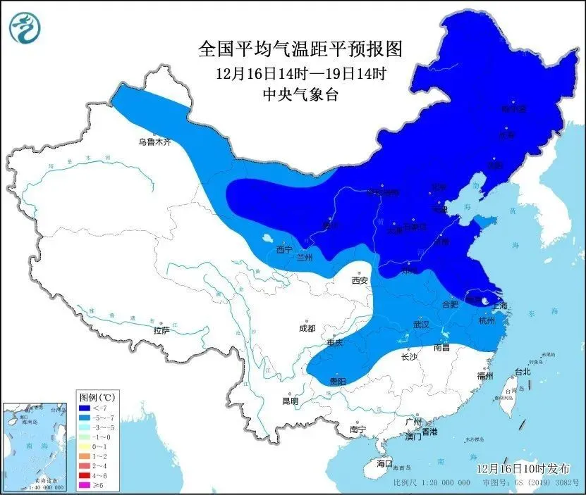 中央气象台12月16日18时继续发布低温黄色预警:受寒潮和后续冷空气影响,未来一周,我国大部地区气温将持续偏低。预计12月16日20时至19日20时,新疆北部、西北地区中东部、内蒙古、华北地区、东北地区、黄淮、江淮、江汉、江南北部、贵州等地部分地区日最低气温较历史同期偏低5℃以上,其中西北地区东部、内蒙古、东北地区、华北地区、黄淮中东部、江淮中东部等地部分地区日最低气温较历史同期偏低7℃以上,最低气温0℃线将位于贵州南部至江南北部一带。