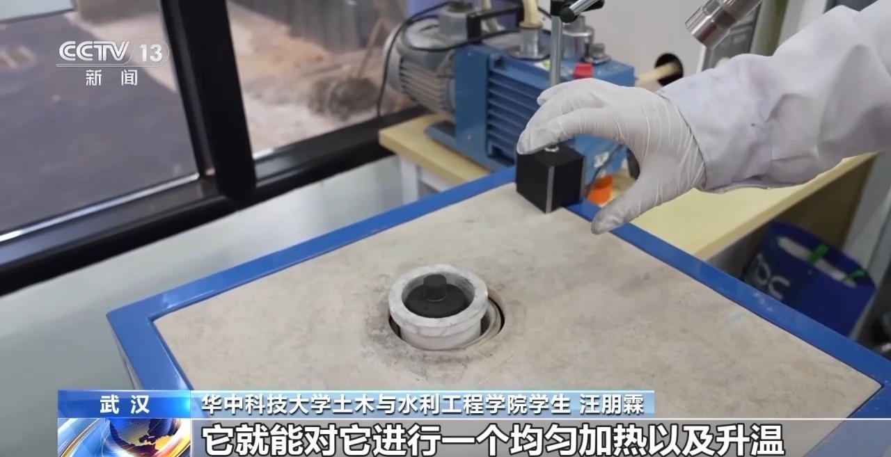 总台央视记者 张春玲:要想在月球上盖房子,很重要的一个步骤就是我们首先要有材料。而月球上就是月壤,月壤通过什么样的方式可以烧结成为砖?在实验室,我们看到,一些研发人员在对如何烧结成月壤砖进行测试。