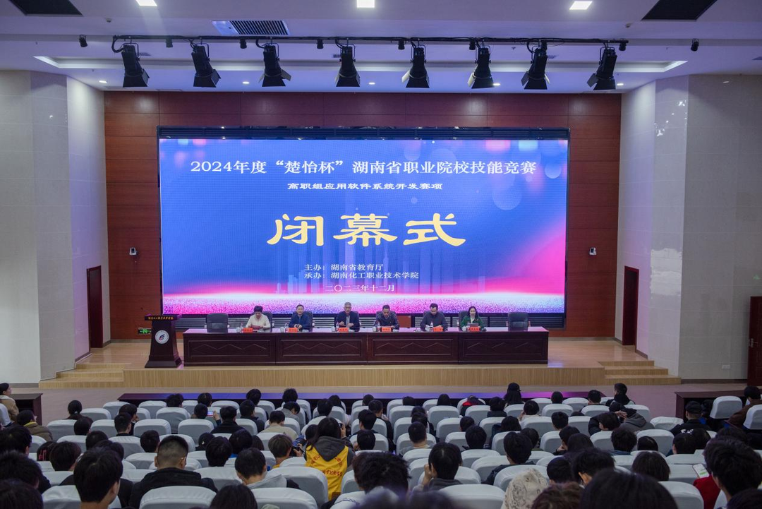 12月10日,2024年度“楚怡杯”湖南省职业院校技能竞赛高职组应用软件系统开发赛项闭幕式在湖南化工职业技术学院举行,省派赛点第一副主任胡清华,赛点副主任、湖南化工职业技术学院副校长田伟军,专家组长周四望,赛项裁判长叶良,省派赛项负责人陈芝均,湖南化工职业技术学院教务处处长熊美珍以及参加本次竞赛的兄弟院校领队、指导教师和选手代表参加闭幕式。闭幕式由熊美珍主持。