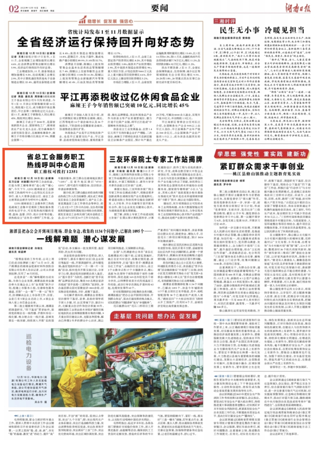 湖南日报12月18日讯(全媒体见习记者 刘韵霞 )维护职工合法权益,打造为职工解难事的“连心线”“暖心线”。今天下午,12351湖南省总工会服务职工热线呼叫中心启用仪式在长沙举行,省人大常委会副主任、省总工会主席周农出席并为呼叫中心揭牌。