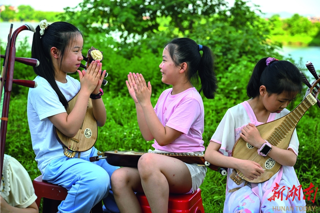 在2019年成立的醴陵市少儿民族乐团中,有60多个孩子来自“舒尤乐坊”。他们既演绎传统经典,又歌颂时代发展,一下拉近了民族音乐与观众的距离。“娃娃乐团”的名气迅速攀升。