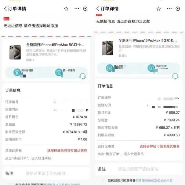 租机平台的订单详情截图 图片来源:每日经济新闻
