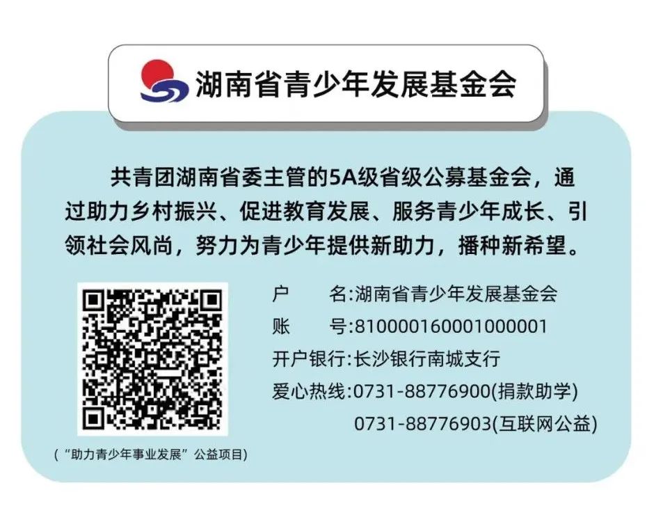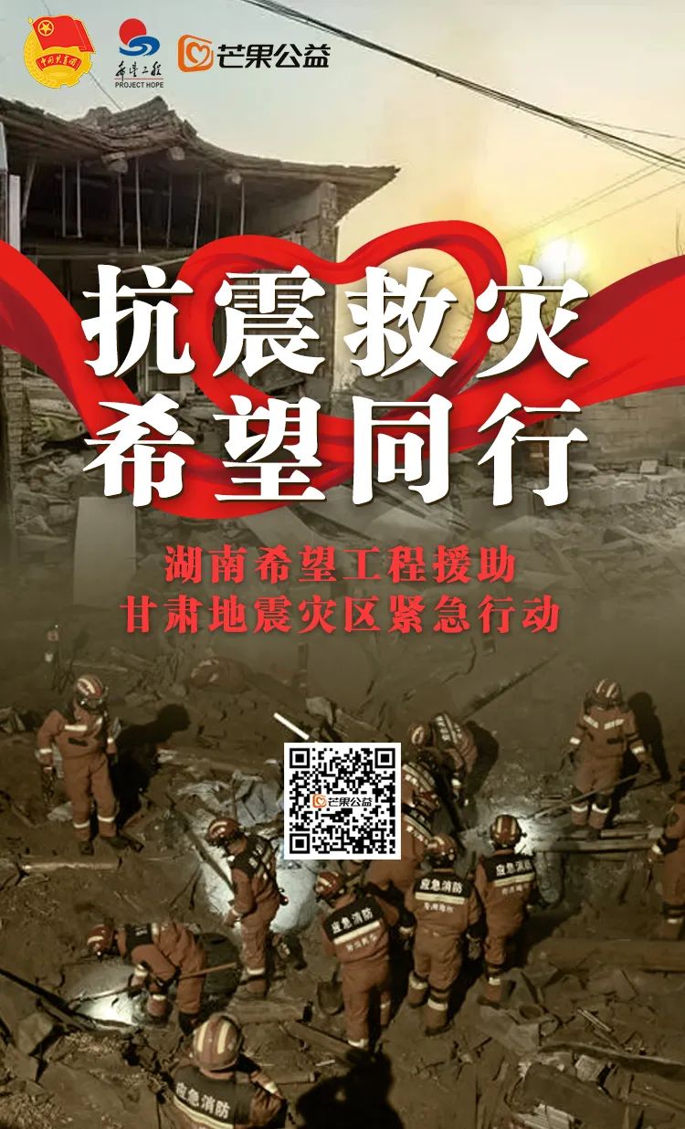 一方有难、八方支援,湖南省青少年发展基金会联合芒果公益平台向全社会发出关于甘肃临夏州积石山县6.2级地震应急赈灾的倡议:呼吁社会各界爱心企业、爱心人士,广大团员青年、少先队员、青年志愿者积极行动起来,为灾区送暖,为青少年纾困。 湖南省青少年发展基金会即时开始接受甘肃临夏州积石山县地震应急赈灾善款捐赠,专项用于甘肃临夏州积石山县6.2级地震开展抗震救灾工作。湖南省青少年发展基金会将依法依规及时公布捐赠款物接受和使用情况,接受社会监督。所有捐款开具湖南省财政厅监制的湖南省公益事业捐赠统一票据,并将在湖南省青少年发展基金会官方网站和微信公众号、芒果公益平台上公布。银行账户:4300 1520 0610 5999 9666湖南青基会捐赠联系电话:0731-88761556,18229909126。银行账户捐款请备注捐款相关信息(捐款人姓名、捐款人联系方式、捐款意向:地震捐款)以区分捐款信息。所有捐款湖南省青少年发展基金会将为您开具捐赠收据,需要捐赠收据的爱心人士请提供以下信息(捐赠人姓名、开票抬头、金额、银行转账记录或线上捐赠截图、电话、地址等)发至邮箱hunanyouth@126.com进行申请,联系电话0731-88776902。基于人工成本、邮寄成本、工作效率等方面考虑,100元(含)以上的捐赠收据将以平邮方式寄出,100元以下的捐赠收据请您提前五个工作日进行预约自取(地址:长沙市湘府西路1号湖南省青少年活动中心文娱中心三楼302室,联系人:李曼奇 0731-88776902),建议多次捐赠累积开具捐赠发票,感谢您的信任和理解!