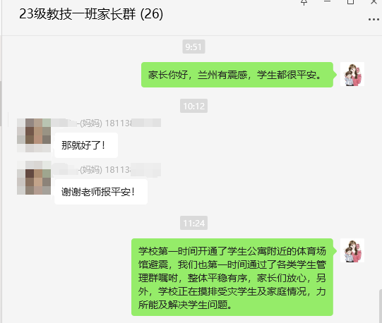 该校通过新媒体平台和群组及时发布信息、回应关切,引导同学们科学应对,让家长放心。