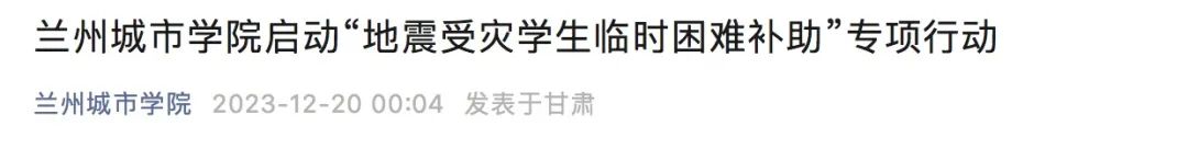 此外,兰州交通大学、兰州城市学院等高校也已启动“地震受灾学生临时困难补助”专项行动。