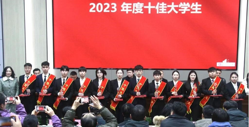 随后,高峰宣读了湖南铁道职院2023年度学校优秀辅导员、优秀班主任、十佳大学生等先进个人及集体表彰决定,并进行了现场颁奖。优秀辅导员代表叶颖、优秀班主任代表李璐、优秀学生代表商英212班魏铭铭作现场发言。易今科在会上高度肯定了2023年学生工作所取得的成绩,同时对进一步深化“以学习者为中心”的办学理念,培养“湖南铁道特质”学生提出了希望和要求。他要求学生干部要增强服务意识、规矩意识,严格要求自己,充分发挥先锋模范作用。
