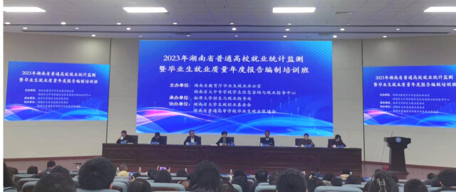 本次培训班由湖南省教育厅毕业生就业办公室、湖南省大中专学校学生信息咨询与就业指导中心主办,湘潭大学招生与就业指导处承办,帮助做好我省2023届高校毕业生就业质量年度报告编撰发布工作,并部署2024届高校毕业生就业质量年度报告撰写工作。