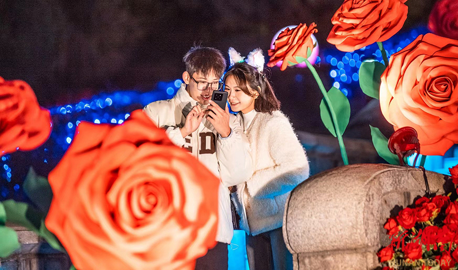 12月21日,长沙世界之窗打造的迎新巨型城堡玫瑰瀑布亮相,万支玫瑰一层层倾泻而下,浪漫无比。湖南日报全媒体记者 徐行 通讯员 邓婷 摄影报道