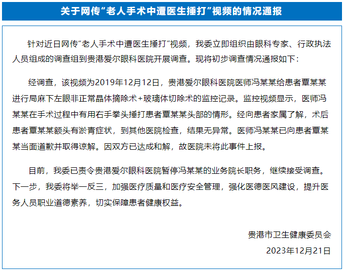 没想到手术中遭到兼任院长的医生冯某某捶打